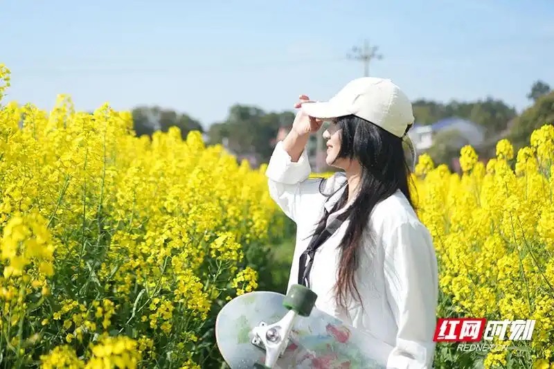 游客在花海中拍照。这个春天,不妨走进攸县,徬徨金色花海,回味乡村好意思食,感受攸县宁家坪的私有魔力。