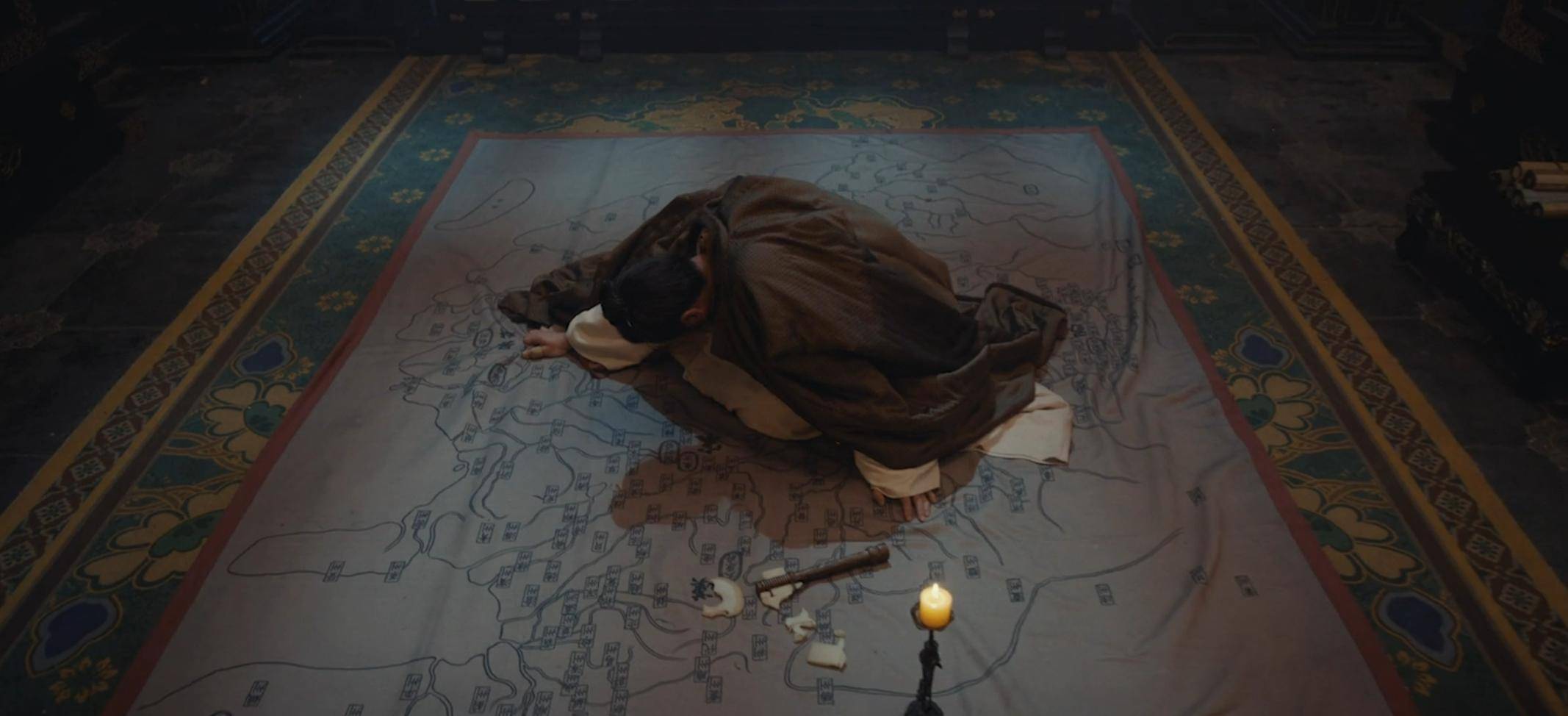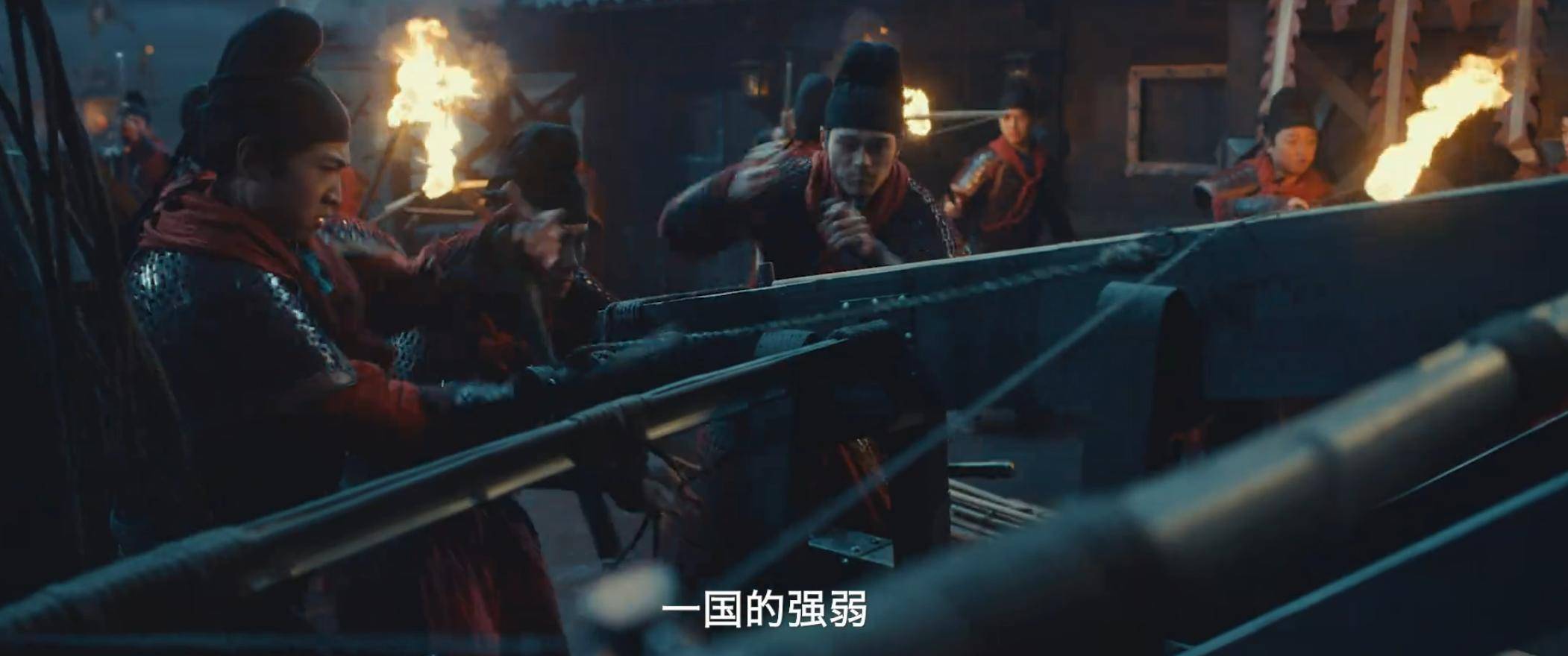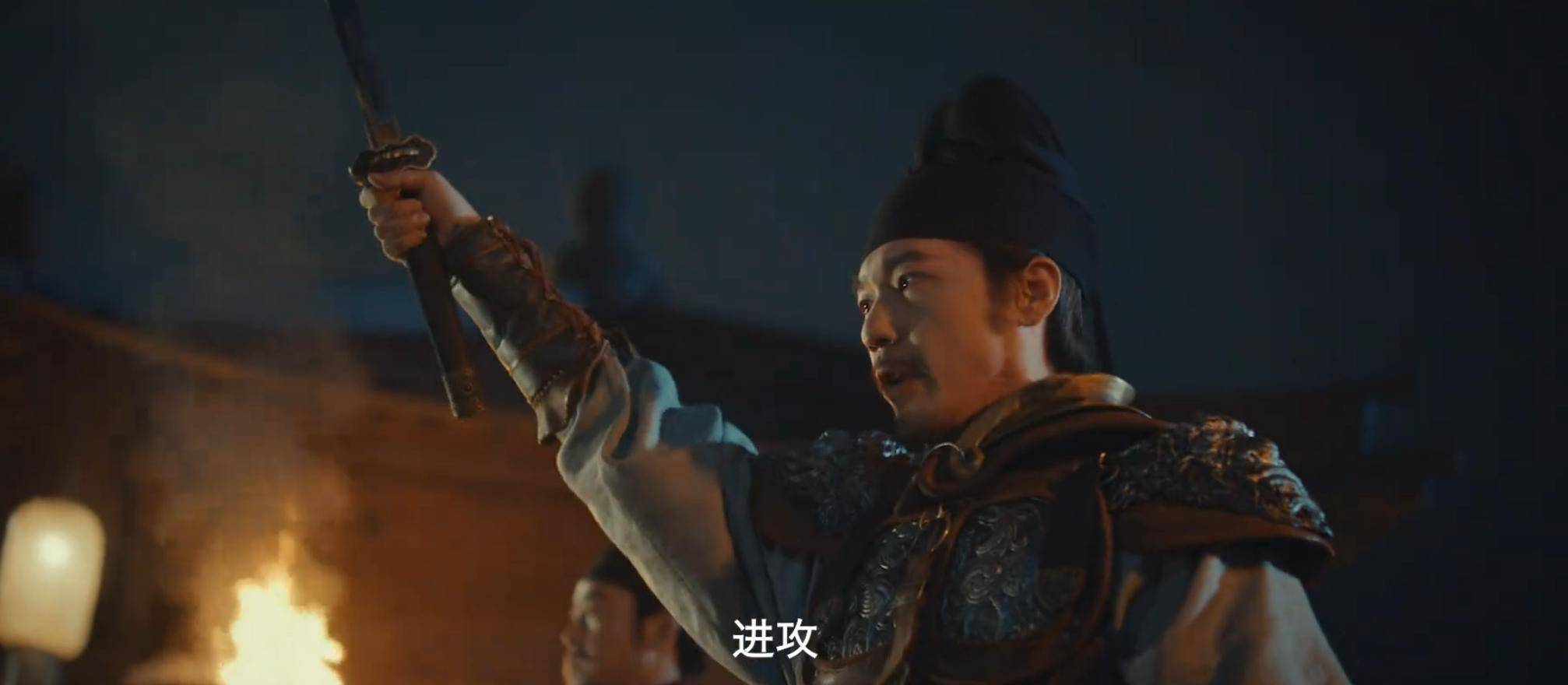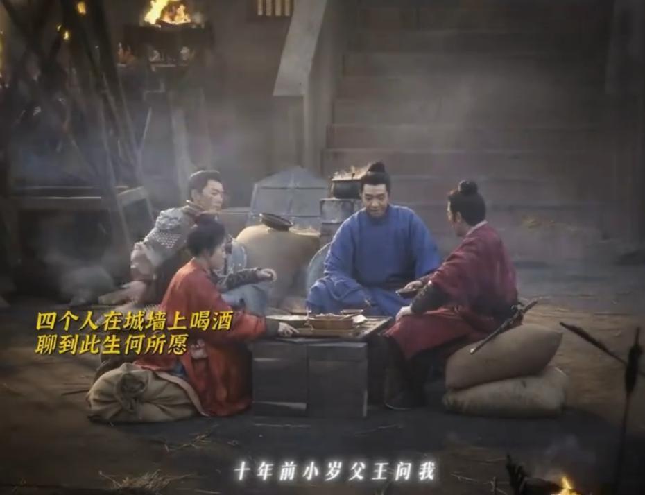 伪装成粮商的赵匡胤(朱亚文饰)、擦抹横刀的后周世宗郭荣(俞灏明饰),与微服出行的钱弘俶围坐在篝火旁,分食着干硬的馍片。