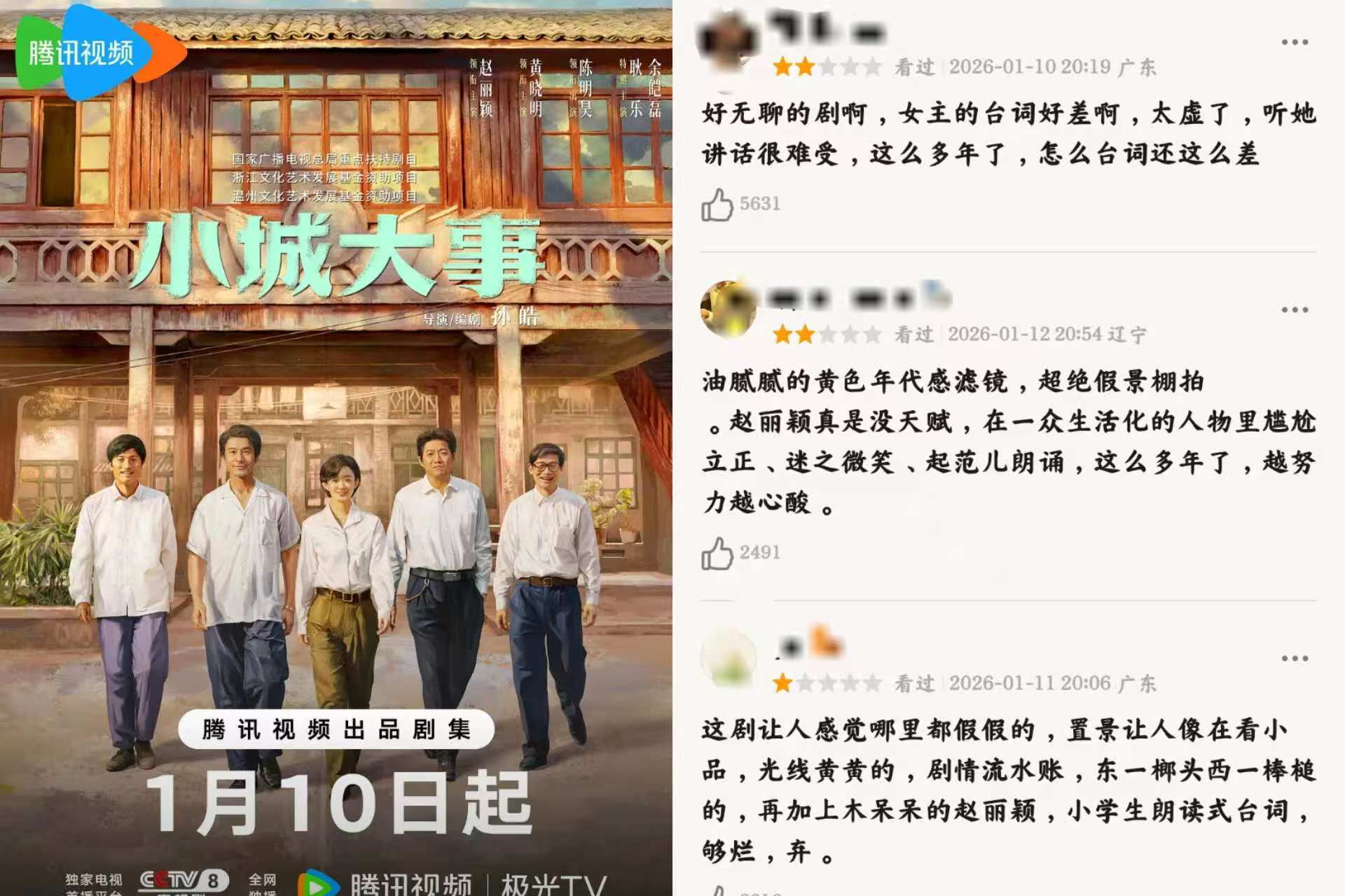 这些偶像剧丢丑就很浮浅了,但没意料央视的《小城大事》也那么丢丑,赵丽颖、黄晓明演技差,剧情也没什么谈理,竟然劝退了很多不雅众。
