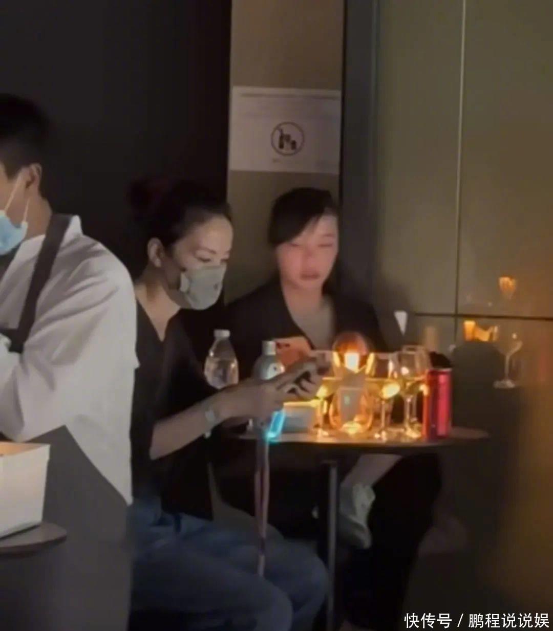 王菲开头与好友坐在VIP区域静静凝听,桌子上摆放的有酒水饮料等。