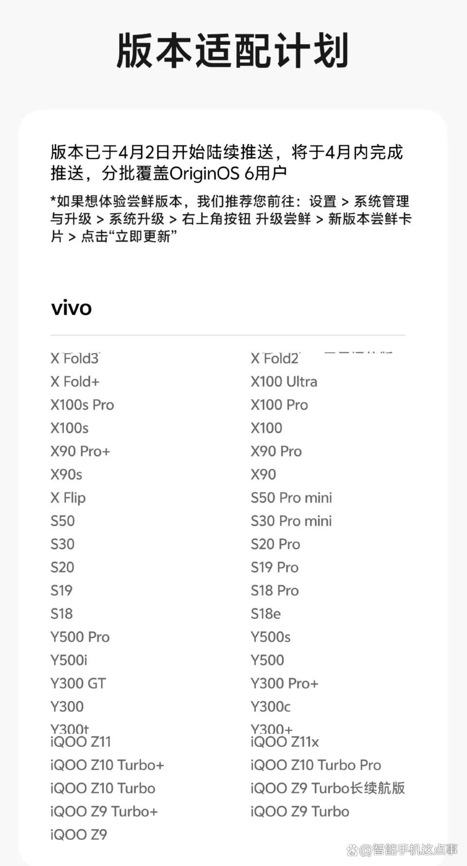 该版块已于4月2日运行不息推送,将于4月内完玉成量推送,扫数已升级至OriginOS 6的上述机型用户均可收到更新。