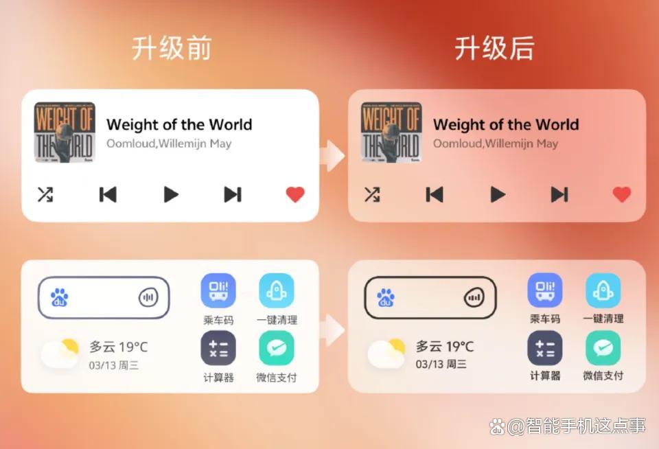 同期原子组件的质感升级值得单拎出来说,桌面搜索组件和音乐组件新增腌臜材质,协调相册组件的新增4×4和4×2尺寸,桌面布局的解放度和视觉脉络感王人有光显援助。