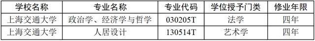 本年获批增设2个本科专科:政事学、经济学与形而上学和东谈主居设想。